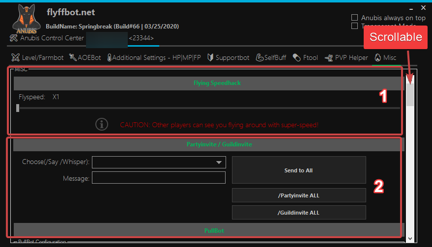 Flying Speedhack this will allow you to multiply your flying speed. It is recommended to use it x2-x5 to aviod portbacks. On Server 1 portback will occur more often. CAUTION: CAN BE SEEN BY OTHERS!